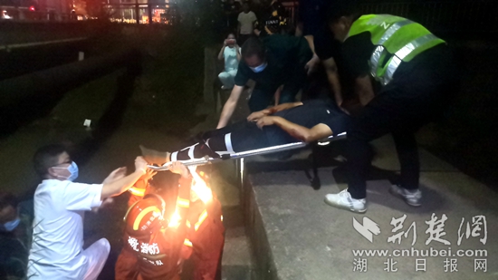消防人員一邊令人呼喊傷者,避免其陷入深度昏迷后危及生命,一邊使用救生擔(dān)架轉(zhuǎn)移傷者。經(jīng)過五分鐘的緊張救援,成功將傷者送上120急救車并送往醫(yī)院接受進(jìn)一步治療。