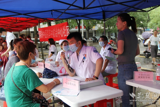 黃岡市中心醫(yī)院專家為群眾免費(fèi)測(cè)量血壓、血糖,提供咨詢?cè)\斷、預(yù)防指導(dǎo)、康復(fù)訓(xùn)練等健康管理服務(wù)。通訊員 供圖