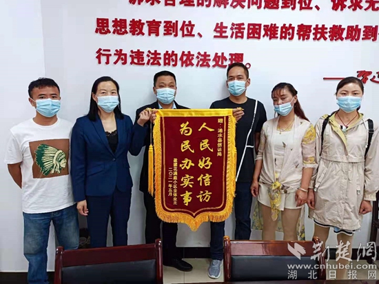 圖為浠水縣清泉盈德花滿庭小區(qū)代表到該縣信訪局送錦旗。(通訊員供圖)