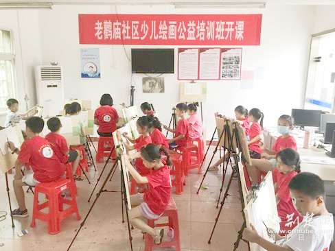 該培訓(xùn)班已經(jīng)舉辦到第八期,2020年因新冠肺炎疫情,培訓(xùn)班停辦。今年在隆重慶祝建黨100周年活動(dòng)之際,老鸛廟社區(qū)再次于7月5日開課,讓愛好書畫的中小學(xué)生每天來社區(qū)按時(shí)上下課,到秋季開學(xué)時(shí)結(jié)束。