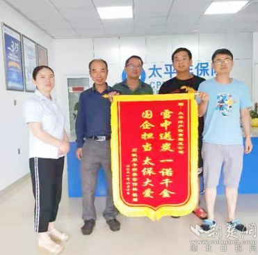 中國(guó)太平洋財(cái)產(chǎn)保險(xiǎn)股份有限公司黃梅支公司工作人員先后五次到達(dá)現(xiàn)場(chǎng)查勘、復(fù)勘、定損,并迅速將19.8萬(wàn)元設(shè)施農(nóng)業(yè)保險(xiǎn)賠付到位。為感謝該公司的高效服務(wù),石鐵祥代表石畈朋豐農(nóng)民種養(yǎng)專業(yè)合作社給該公司送來(lái)錦旗表示感謝。