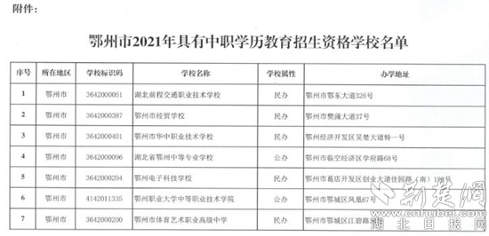 圖為中職學(xué)歷招生資格學(xué)校名單。來源:鄂州市教育局官網(wǎng)