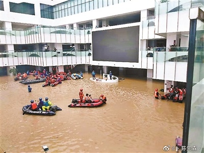 據(jù)山東臨沂閃電救援隊(duì)隊(duì)員介紹,該救援隊(duì)7月22日開始到阜外華中醫(yī)院參與救援,現(xiàn)場(chǎng)救援人員分工合作,有人用皮劃艇將物資送進(jìn)醫(yī)院,有人用皮劃艇將被困在院內(nèi)的患者及其家屬、醫(yī)護(hù)人員轉(zhuǎn)移出來(lái)。“我們到的時(shí)候,院內(nèi)大概還有1500人等待轉(zhuǎn)移,下午我們撤離的時(shí)候,現(xiàn)場(chǎng)的水電還沒恢復(fù)供應(yīng),通訊信號(hào)也是斷斷續(xù)續(xù)的。接下來(lái),我們還要去別的地方繼續(xù)支援。”