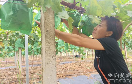 “每天大約接待周邊過來游玩、采摘、購買水果的市民50多人,翠冠梨和水蜜桃快到尾期了,可以進園采摘。”黃州區(qū)政協(xié)委員、嘉裕葡萄種植專業(yè)合作社負責人邵國平臉上閃爍著豐收的喜悅,“2016年我們就注冊了‘大別山嘉?!纳虡?,按照綠色食品的標準生產(chǎn),葡萄含糖量高、果實緊實、耐貯存,2018年還榮獲了第十九屆中國綠色食品博覽會金獎?!?/p>
