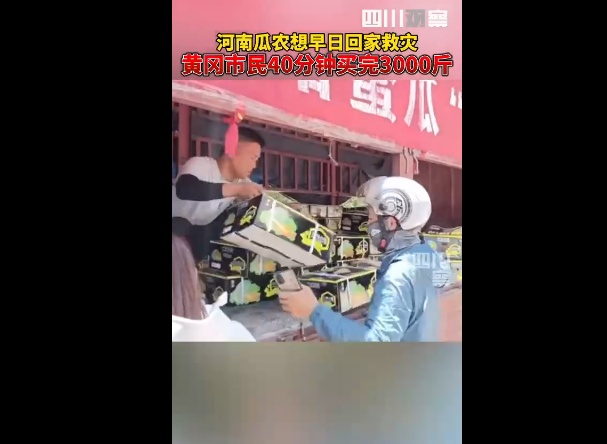 ·暖心!河南一瓜農(nóng)想早日賣完瓜回家救災(zāi),黃岡市民僅用40分鐘買完河南瓜農(nóng)3000斤瓜。