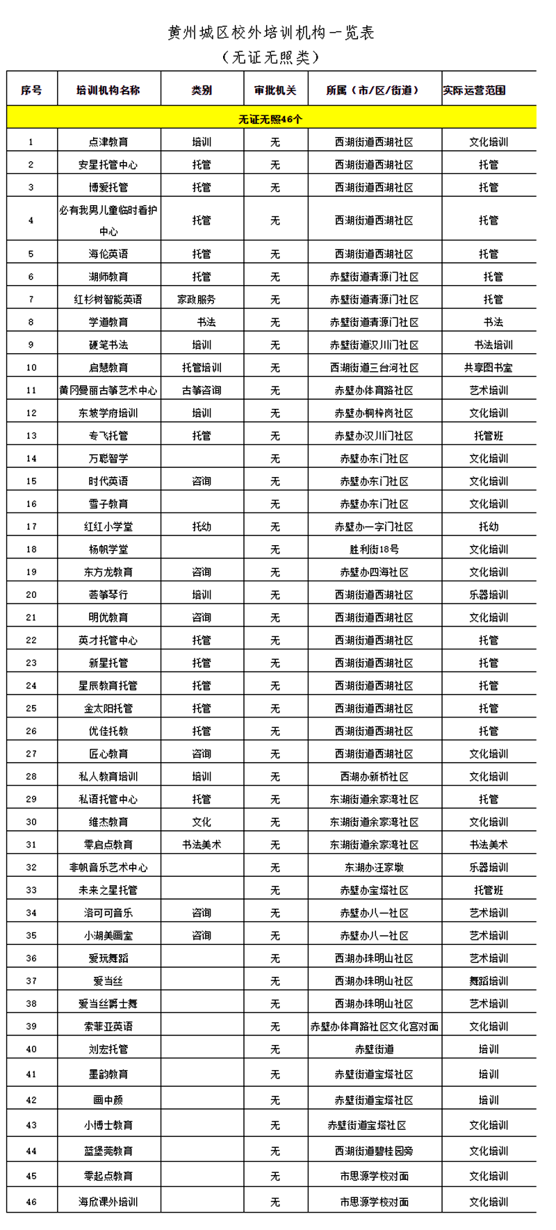 荊楚網(wǎng)(湖北日?qǐng)?bào)網(wǎng))訊(記者褚棟)7月24日,黃岡市黃州區(qū)教育局官方微信發(fā)布最新公告,公布了該區(qū)首批校外培訓(xùn)機(jī)構(gòu)“黑白”名單,其中46家培訓(xùn)機(jī)構(gòu)被列入“黑名單”。