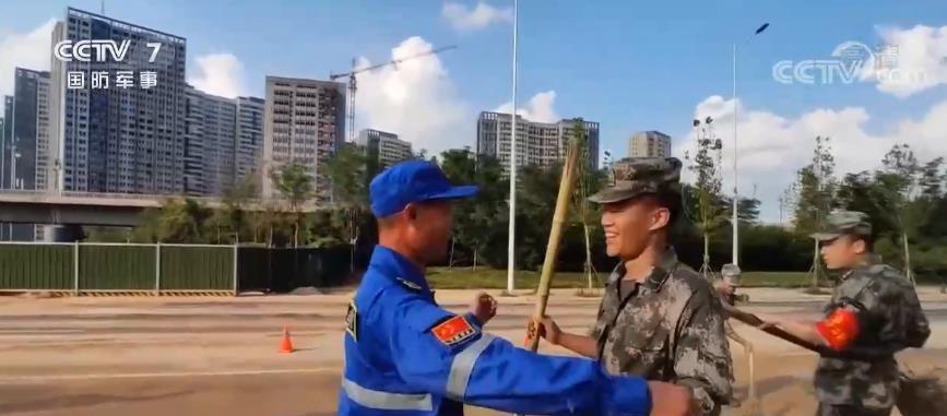 正在鄭州二七區(qū)金海路上參加道路清淤的楊帆,突然看到父親的出現(xiàn),靦腆的他也抑制不住內(nèi)心的激動。看到近一年未見的兒子,老楊同樣是喜出望外,父子在救災(zāi)一線緊緊相擁。