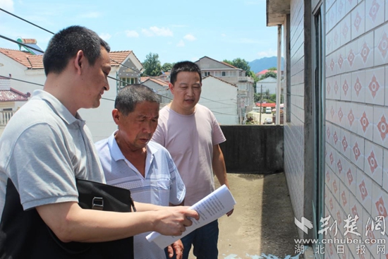 向倒損住房戶主介紹相關(guān)政策。通訊員供圖