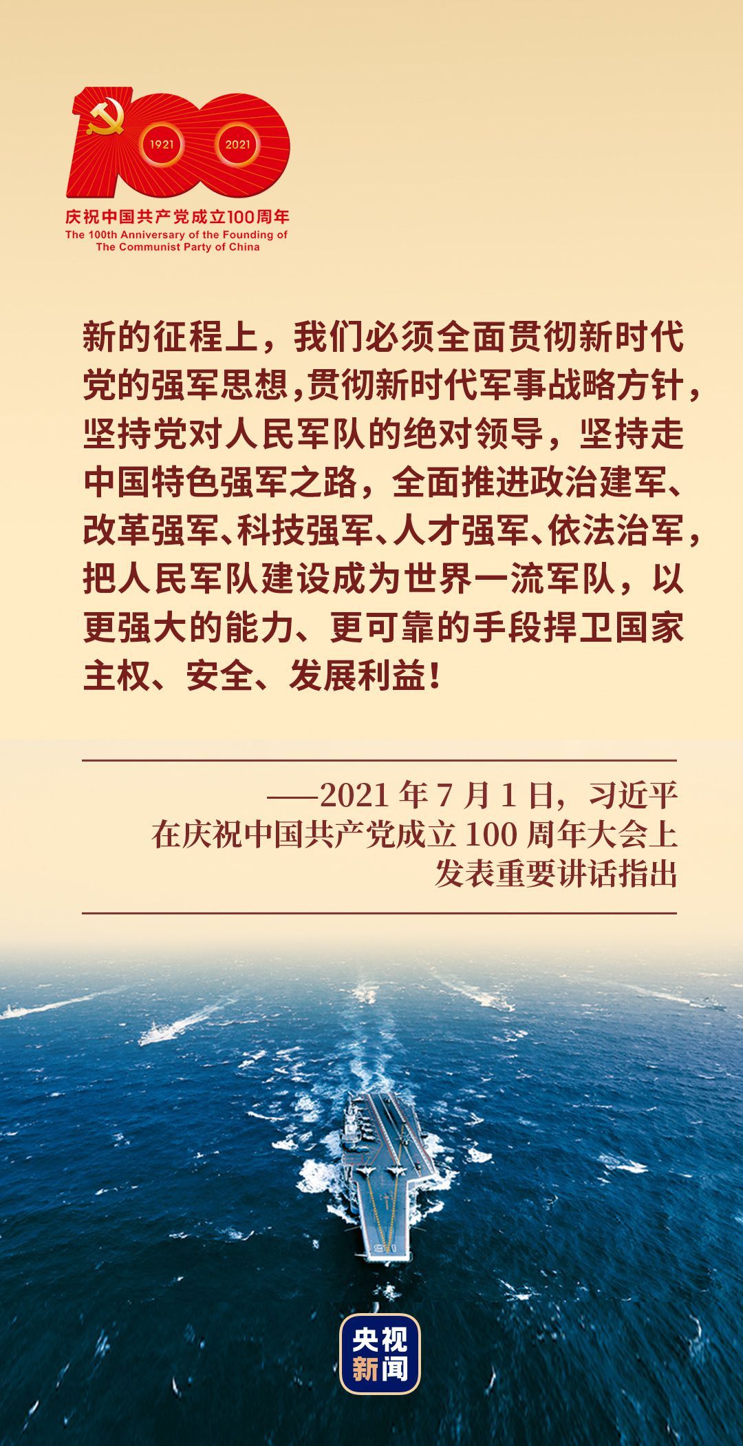 “把人民軍隊(duì)建設(shè)成為世界一流軍隊(duì),以更強(qiáng)大的能力、更可靠的手段捍衛(wèi)國家主權(quán)、安全、發(fā)展利益!”2021年7月1日,習(xí)近平總書記在慶祝中國共產(chǎn)黨成立100周年大會上的鏗鏘話語,指引現(xiàn)實(shí),啟迪未來。