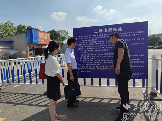 高新區(qū)紀(jì)檢監(jiān)察工委工作人員在黃石火車站廣場停車場查看收費標(biāo)準(zhǔn)公示情況。通訊員供圖