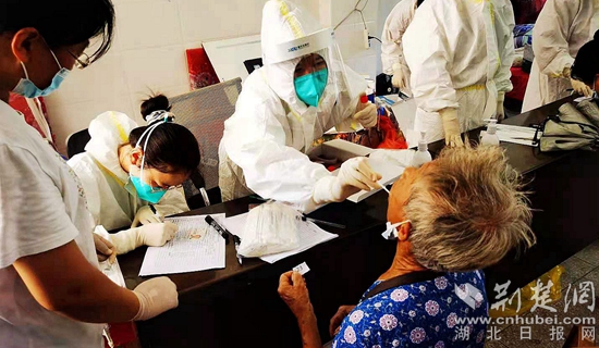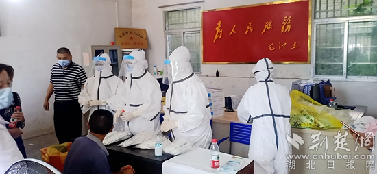 當天氣溫高達38℃,浠水縣支援紅安醫(yī)療隊在杏花鄉(xiāng)劃定區(qū)域內(nèi)5個檢測點各就各位,醫(yī)務(wù)人員穿著厚厚的隔離防護服,戰(zhàn)高溫冒酷暑與時間賽跑,有序開展核酸檢測工作。截至當天下午5時,圓滿完成市指揮部下達的5個點1800份核酸檢測采樣任務(wù)。
