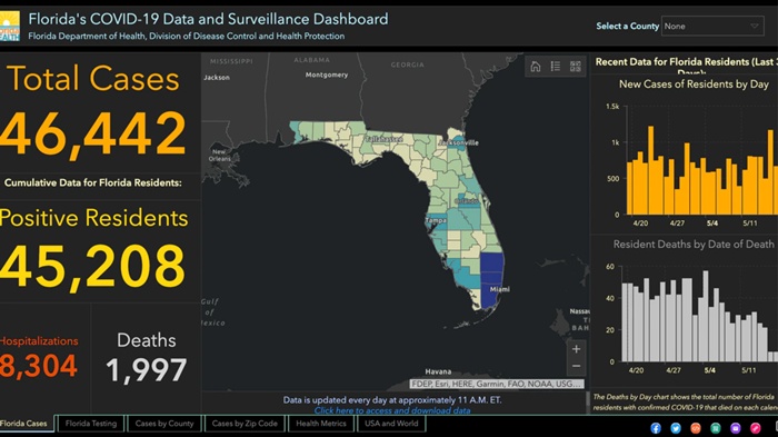 佛羅里達州新冠肺炎數(shù)據(jù)監(jiān)控儀表板 圖源:坦帕灣時報