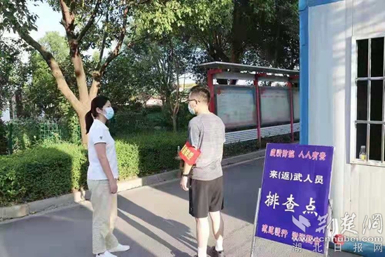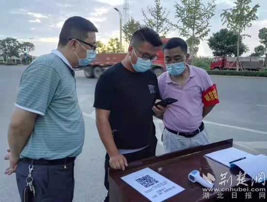“請(qǐng)您下車,進(jìn)行登記,請(qǐng)您……”在郭應(yīng)龍社區(qū)王勝益垸,一輛武漢牌照的外來車輛闖入卡點(diǎn)??吹杰囕v司機(jī)不聽勸阻闖入社區(qū),武穴市教育局招生考試中心干部陳節(jié)興,趕緊拿起手機(jī)給武穴辦事處郭應(yīng)龍社區(qū)主任伍昌明報(bào)告。幾分鐘后,伍昌明帶著“闖關(guān)”司機(jī)陳某到達(dá)卡點(diǎn)接受登記,并進(jìn)行批評(píng)教育。