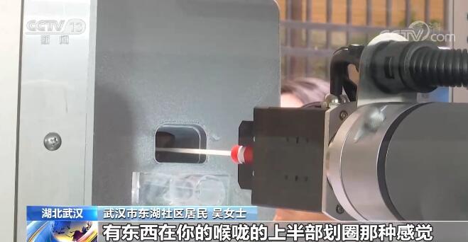科技力量也在助力這次全員核酸檢測,東湖社區(qū)的吳女士就感受了一次機器人做核酸。