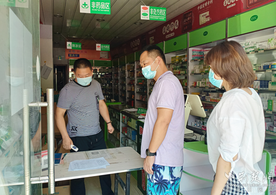 監(jiān)督檢查專班檢查藥店等場(chǎng)所疫情防控措施落實(shí)情況。通訊員 供圖