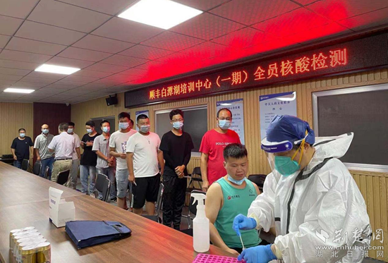 黃岡疾控工作人員為工友采樣。通訊員 供圖