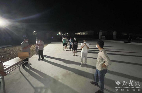荊楚網(wǎng)(湖北日報網(wǎng))訊(通訊員 余晨)8月6日晚8時許,黃岡市疾控中心在順豐白潭湖培訓(xùn)中心(一期)工地上,正忙著給工友們采集核酸樣本。百余名工人在疾控工作人員的引導(dǎo)下,保持一米安全距離,排隊進行核酸檢測。據(jù)悉,黃岡市疾控中心作為中堅力量將對黃州城區(qū)64個工地進行核酸采樣工作。