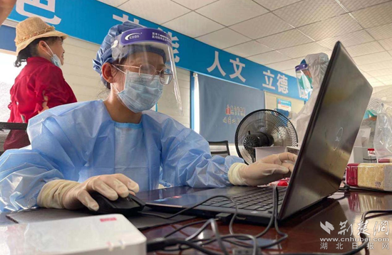 黃岡疾控工作人員進行數(shù)據(jù)錄入。通訊員 供圖