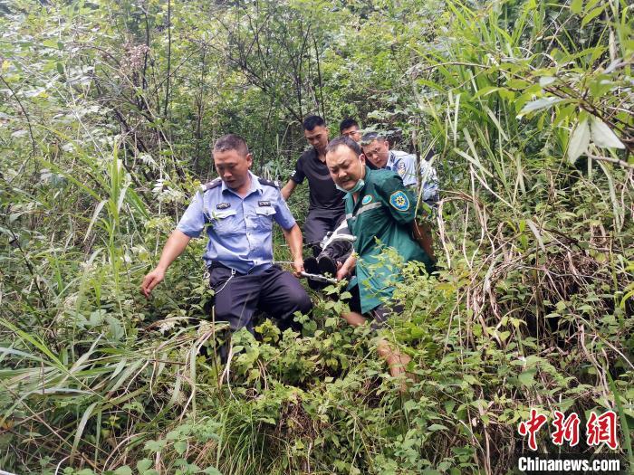 8月5日17時55分,湖北省五峰土家族自治縣公安局長樂坪派出所接一村民報警,稱其被困在洞口村一山崖上無法動彈,其14歲的兒子墜崖,傷勢嚴重。民警輔警迅速帶好救援裝備直奔現(xiàn)場,并第一時間與120救護人員取得聯(lián)系。