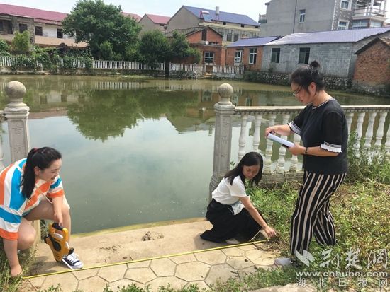 審計(jì)人員在坑塘整治工程現(xiàn)場(chǎng)核查的情景。通訊員供圖