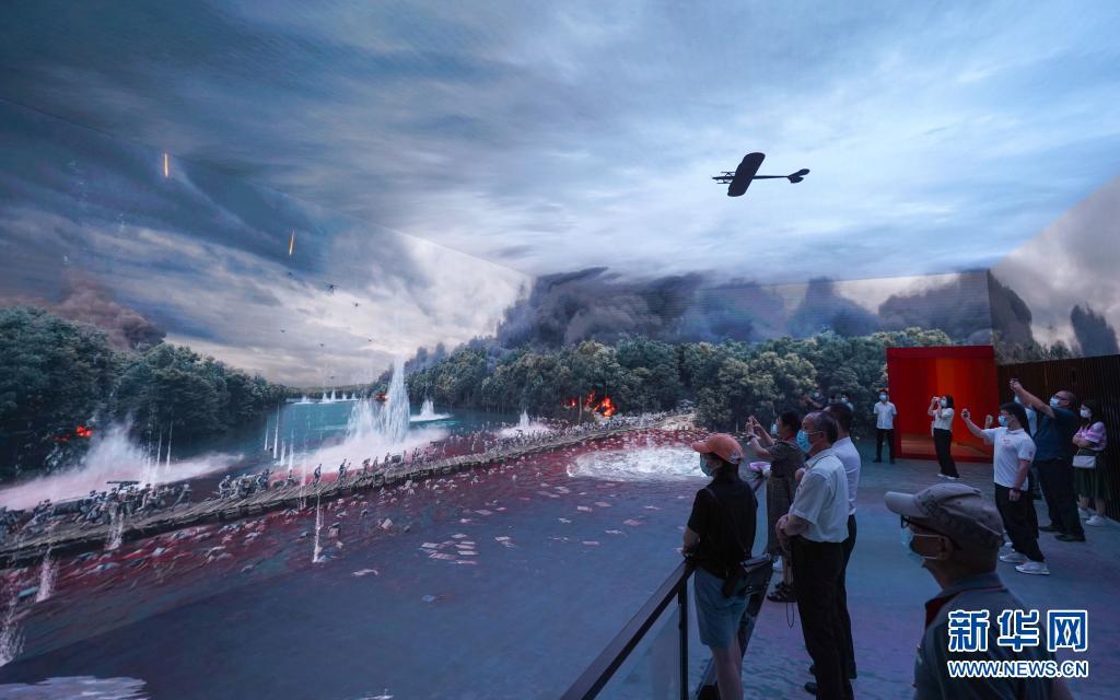 7月15日,觀眾在中國共產(chǎn)黨歷史展覽館“‘不忘初心、牢記使命’中國共產(chǎn)黨歷史展覽”上觀看湘江戰(zhàn)役視頻。新華社記者 陳曄華 攝