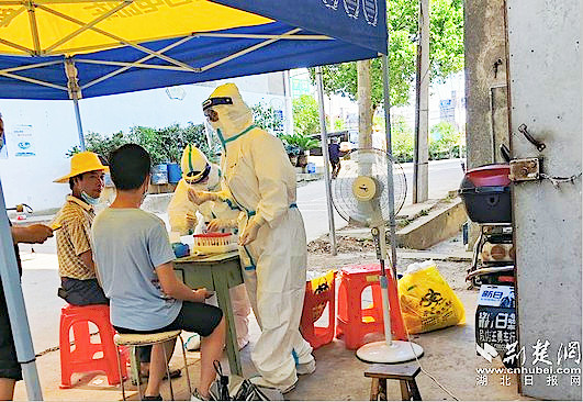 當天上午8點整,小分隊準時抵達段店鎮(zhèn)。烈日下,醫(yī)護人員穿著厚厚的防護服,立即進入緊張的工作狀態(tài),完成2475人次核酸采集。