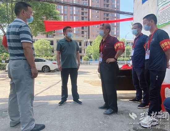 十月社區(qū)和窯湖片區(qū)大黨委第一書記高橋忠(左二)到片區(qū)卡口督導檢查疫情防控工作。通訊員供圖