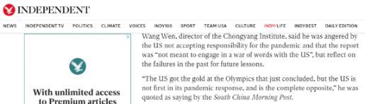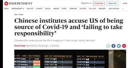 8月10日,英國《獨(dú)立報(bào)》發(fā)表《中國機(jī)構(gòu)指責(zé)美國為新冠病毒來源且“逃避責(zé)任”》一文。該文如實(shí)引用了研究報(bào)告中關(guān)于“兩大黨派競爭下的聯(lián)邦體系未能承擔(dān)起責(zé)任,在不同層面上推諉扯皮。這構(gòu)成了抗擊大流行病的‘不團(tuán)結(jié)的美國’形象”以及“美國不是在遏制病毒的全球傳播,而是在從事‘病毒來源追蹤恐怖主義’”等原文。