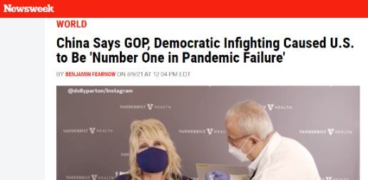 當(dāng)?shù)貢r(shí)間8月9日,美國《新聞周刊》(Newsweek)發(fā)表題為《中國稱美國共和黨與民主黨的內(nèi)斗導(dǎo)致美國成為“第一抗疫失敗國”》的文章,同時(shí)也于當(dāng)天聯(lián)系了美國白宮,詢問其對(duì)報(bào)告的回應(yīng),但白宮不予置評(píng)。該報(bào)道較為客觀地介紹了報(bào)告內(nèi)容:“報(bào)告直截了當(dāng)?shù)伛g斥了美國的說法,即武漢病毒實(shí)驗(yàn)室可能是2019年底新冠疫情的起源,指出美國是‘疑似暴發(fā)源’。