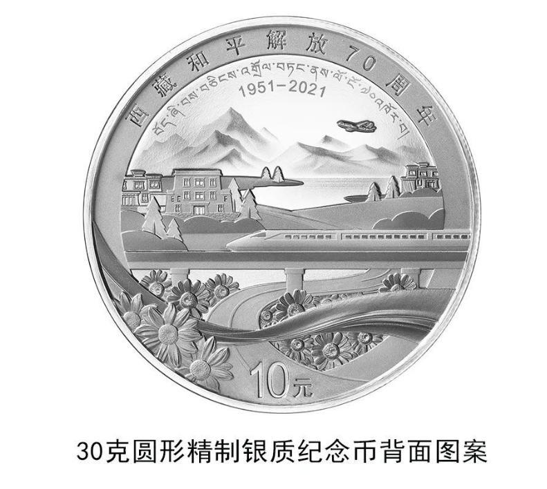 西藏和平解放70周年金銀紀(jì)念幣8月16日發(fā)行。