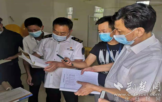 蘄春分局檢查醫(yī)療機(jī)構(gòu)醫(yī)廢臺(tái)賬。通訊員供圖