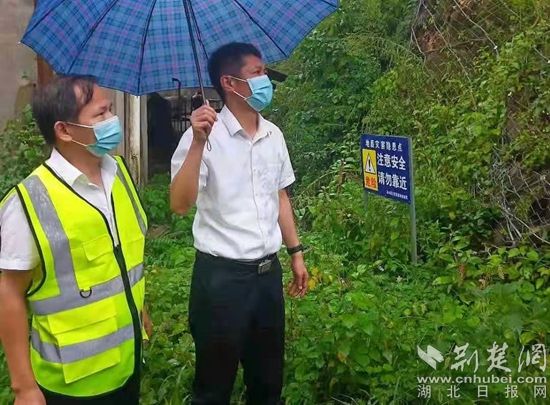 鎮(zhèn)村干部巡查險(xiǎn)情。通訊員供圖
