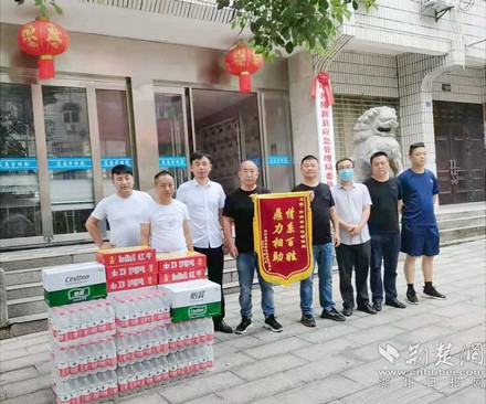 用錄村民為排險(xiǎn)隊(duì)員送上錦旗和物資。通訊員供圖
