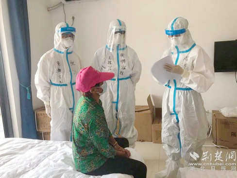 “看著這群像我的兒女一樣大的小朋友們這么辛苦這么累,心痛死了!跟著她們一起,我又感覺年輕不少!”黃梅縣人民醫(yī)院健康管理科護士陳曄說,每次近距離接觸的操作,不光面對病毒高風(fēng)險的考驗,在高溫天氣的影響下,穿著不透氣的防護服工作,即使不動也是全身出汗。