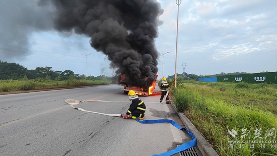 荊楚網(wǎng)(湖北日報網(wǎng))訊(通訊員 黃劍雙 王彬)“119嗎?我的掛車在路上自燃了,我控制不住,你們快來幫幫我……”8月18日清晨5時許,鄂州市消防救援支隊接到報警,鄂州市華容區(qū)吳楚大道附近一輛半掛貨車自燃,華容大隊迅速調派力量前往處置,經過10分鐘左右的撲救,車輛火災被成功撲滅,未造成人員傷亡。