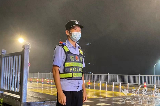 新警蔡蔚在長(zhǎng)江大橋小池卡口參與執(zhí)勤。通訊員供圖