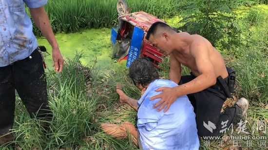 荊楚網(wǎng)(湖北日報網(wǎng))訊(通訊員朱嘉偉 張劍) 祖孫四人不慎連人帶車翻入路邊的深水溝中,兩人被壓在車下……危急時刻,巡邏至此的武穴市公安局萬丈湖派出所民輔警聽到呼救聲后,立即沖進溝中,成功將溝里的祖孫四人救起。這是8月18日上午發(fā)生在武穴市伊利奶牛場附近路段的驚險一幕。