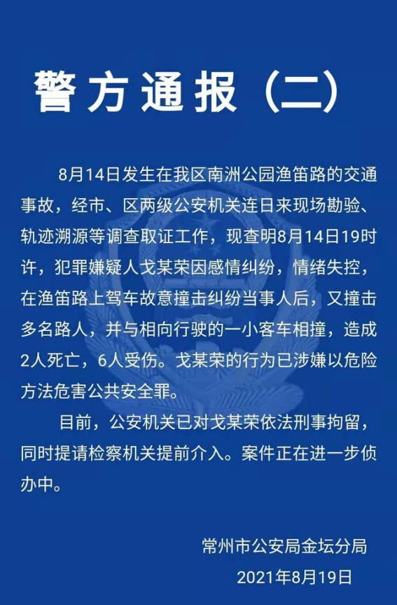 ·官方通報男子公園駕車撞人致2人死亡6人受傷:系因感情糾紛,肇事司機撞擊糾紛當事人后又撞多名路人。