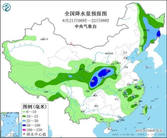 需要注意的是,8月21日開始,又將有另一輪降雨過程從西北地區(qū)啟程向東發(fā)展,甘肅、陜西、河北、河南、山東、蘇皖等地都可能遭遇降雨侵襲。