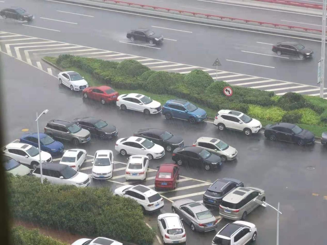 鄭州市民將車輛停在地勢稍高的路邊。史寶銀攝影
