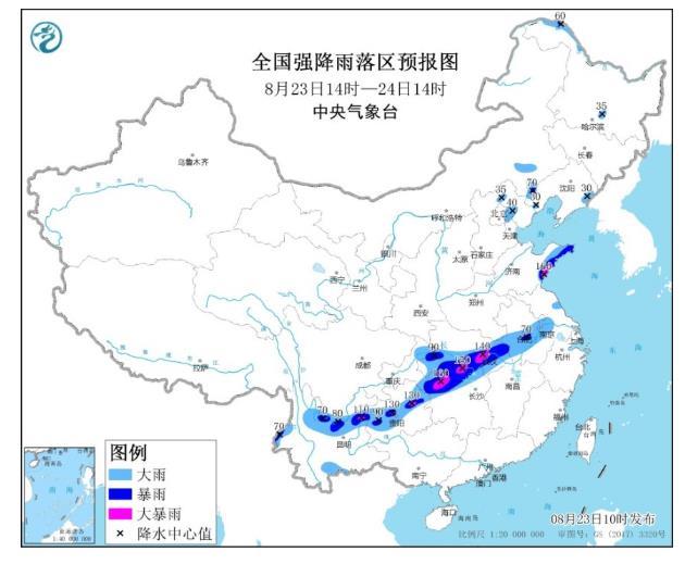 央視網(wǎng)消息:據(jù)中國天氣網(wǎng)消息,中央氣象臺(tái)8月23日10時(shí)繼續(xù)發(fā)布暴雨黃色預(yù)警:預(yù)計(jì),8月23日14時(shí)至24日14時(shí),山東東南部、江蘇中部、安徽中南部、湖北南部和東部、湖南北部、重慶東部、貴州中部、云南北部以及華北東部、黑龍江北部等地部分地區(qū)有大到暴雨,局地有大暴雨(100~160毫米)。上述部分地區(qū)伴有短時(shí)強(qiáng)降水(最大小時(shí)降雨量30~60毫米,局地可超過80毫米),局地有雷暴大風(fēng)等強(qiáng)對(duì)流天氣。