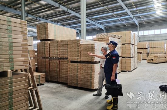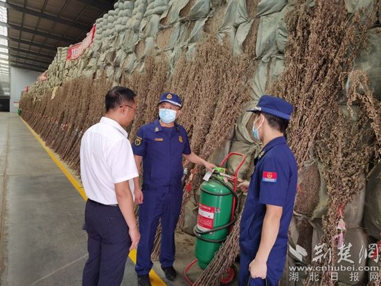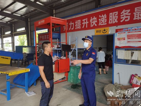 團(tuán)風(fēng)縣消防救援大隊(duì)監(jiān)督人員結(jié)合倉儲(chǔ)物流場所的特點(diǎn),指導(dǎo)和督促各單位落實(shí)消防安全責(zé)任制度。通訊員供圖