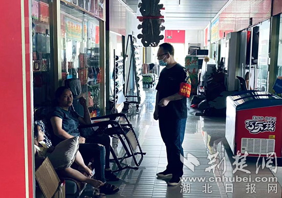 下沉黨員干部入戶(hù)走訪商鋪門(mén)面摸排疫苗接種情況。通訊員 供圖