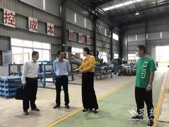紅安縣委副書記、代縣長胡廣到湖北長園天弓了解該公司的具體情況。通訊員供圖