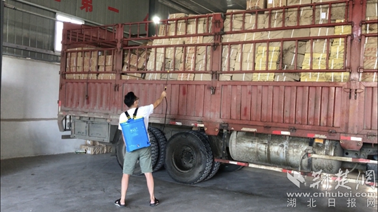 倉庫員工進(jìn)行全面消毒。通訊員供圖