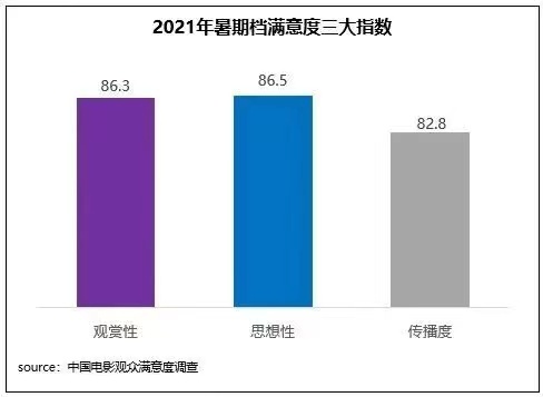 2021年暑期檔,電影工作者在重重挑戰(zhàn)中以保證影片供給穩(wěn)固暑期檔大盤,為觀眾提供多類型、多層次的觀影選擇,并得到了較為理想的滿意度評(píng)價(jià)。
