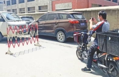 葉元晨用手機(jī)拍照記錄車(chē)輛堵塞交通的不文明現(xiàn)象。