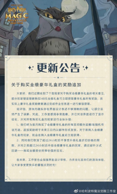 ·哈利波特手游148元禮盒被指虛假宣傳,官方致歉:對已購買的玩家進(jìn)行補(bǔ)償。