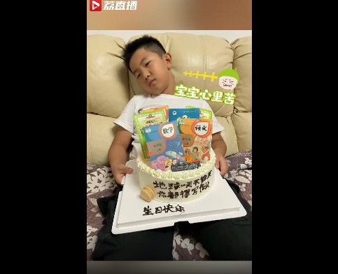 ·媽媽給兒子過生日蛋糕插滿課本:地球一天不毀滅,都得寫作業(yè)。