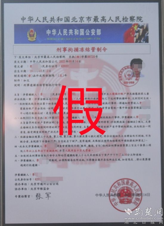 對(duì)方添加李女士為好友后,發(fā)給其“警官證”和“刑事拘捕凍結(jié)管制令”,“拘捕令”上顯示李女士名下的工商銀行賬戶涉及拐賣兒童非法洗錢案,需要證實(shí)李女士與犯罪團(tuán)伙是否有經(jīng)濟(jì)往來。